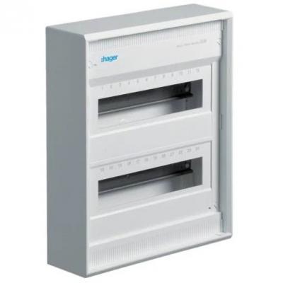 • Накладной пластиковый щит 24 (+4) модуля Hager Volta белые металлические двери