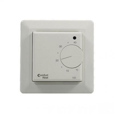 C101 - тонкий в своем классе терморегулятор белого цвета с датчиком температуры пола на проводе, предназначенный для регулирования системы «Теплый пол». Имеет дополнительный вход для «ночного» снижение темпера туры на 5 ° C. Устанавливается на стену или в обычный подрозетник.