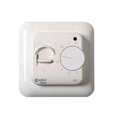 Comfort HEAT C501 - электронный терморегулятор белого цвета с датчиком температуры пола на проводе, предназначенный для регулирования системы «Теплый пол». Имеет дополнительный вход для «ночного» снижение температуры на 5 °C. Устанавливается в обычный подрозетник. Не используется для систем полного отопления помещений и для уличных систем обогрева.