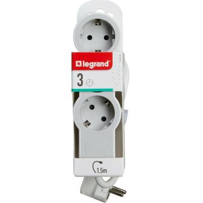 Удлинитель с 3 розетками с заземлением 16 А с кабелем 1,5 м Legrand СТАНДАРТ Белый/Серый