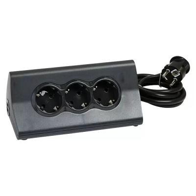 Удлинитель с держателем планшета и выключателем с 3 розетками с заземлением 16 А и 2 разъемами USB тип A с кабелем 1,5 м Legrand Черный