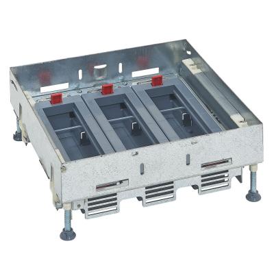 Напольная коробка с панелью из нержавеющей стали вровень с полом для бетонных полов на 24 (3 х 8) модулей с горизонтальным положением механизмов Legrand нержавеющая сталь